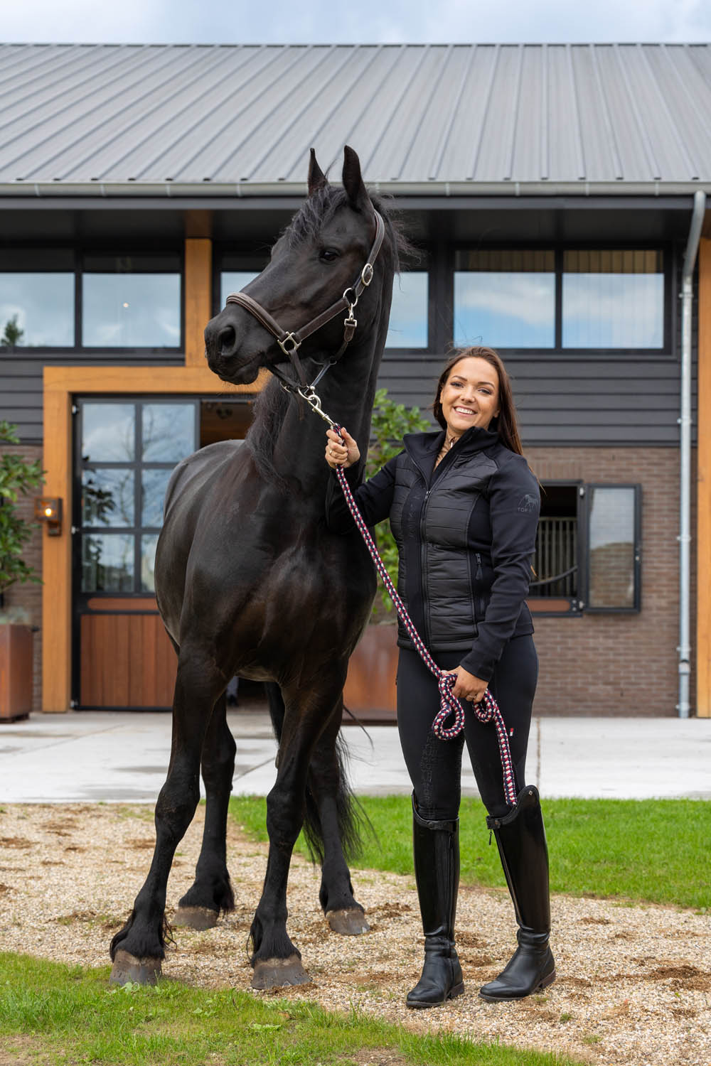 Ik ben Isa, 26 jaar en opgegroeid tussen de paarden op onze mooie Veluwse thuisbasis. Op mijn vijfde begon ik te rijden op een kleine Shetlander die nog steeds bij ons woont en een speciaal plekje in mijn hart heeft. Rond mijn vijftiende stapte ik over naar de paarden en ontdekte ik de wedstrijdsport. Samen met mijn moeder reed ik bijna ieder weekend een proef, en dat werd onze gedeelde passie.